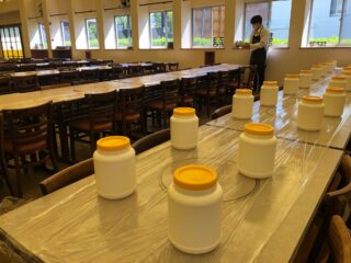 「アイス作り体験の準備」