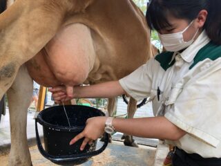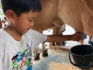と言う事で、イレギュラーがあったので昨日の乳しぼり体験(2回)は、私が担当。