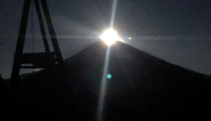 ☂雨の日曜日、夕方「黄金の富士山」が現れました。