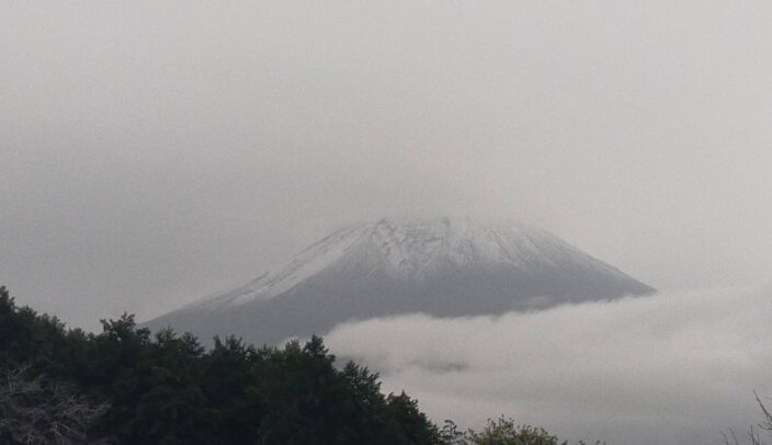 「寒い雨の日、富士山がガッチリ白くなる」 富士山が見えない1日でしたが、チラッと見えた富士...