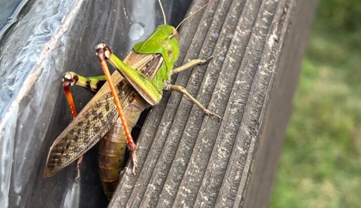 バッタが、(地面と間違えて)卵を産んでいる貴重なシーンを見かけた。