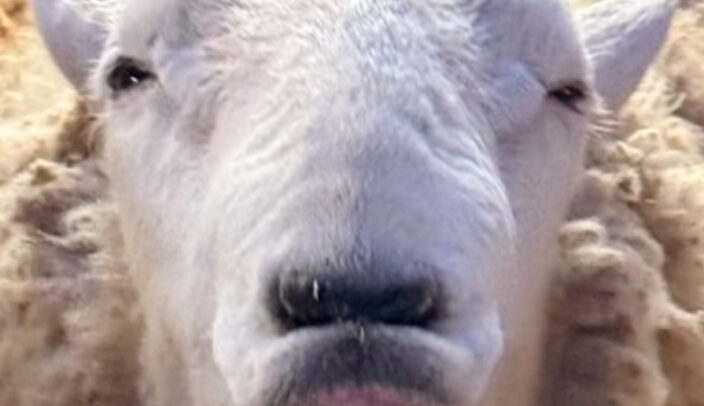 「ヒツジ移動」 ヒツジに紐をつけて、行きたい方向に歩く。 「お散歩ヤギ」でなく「お散...