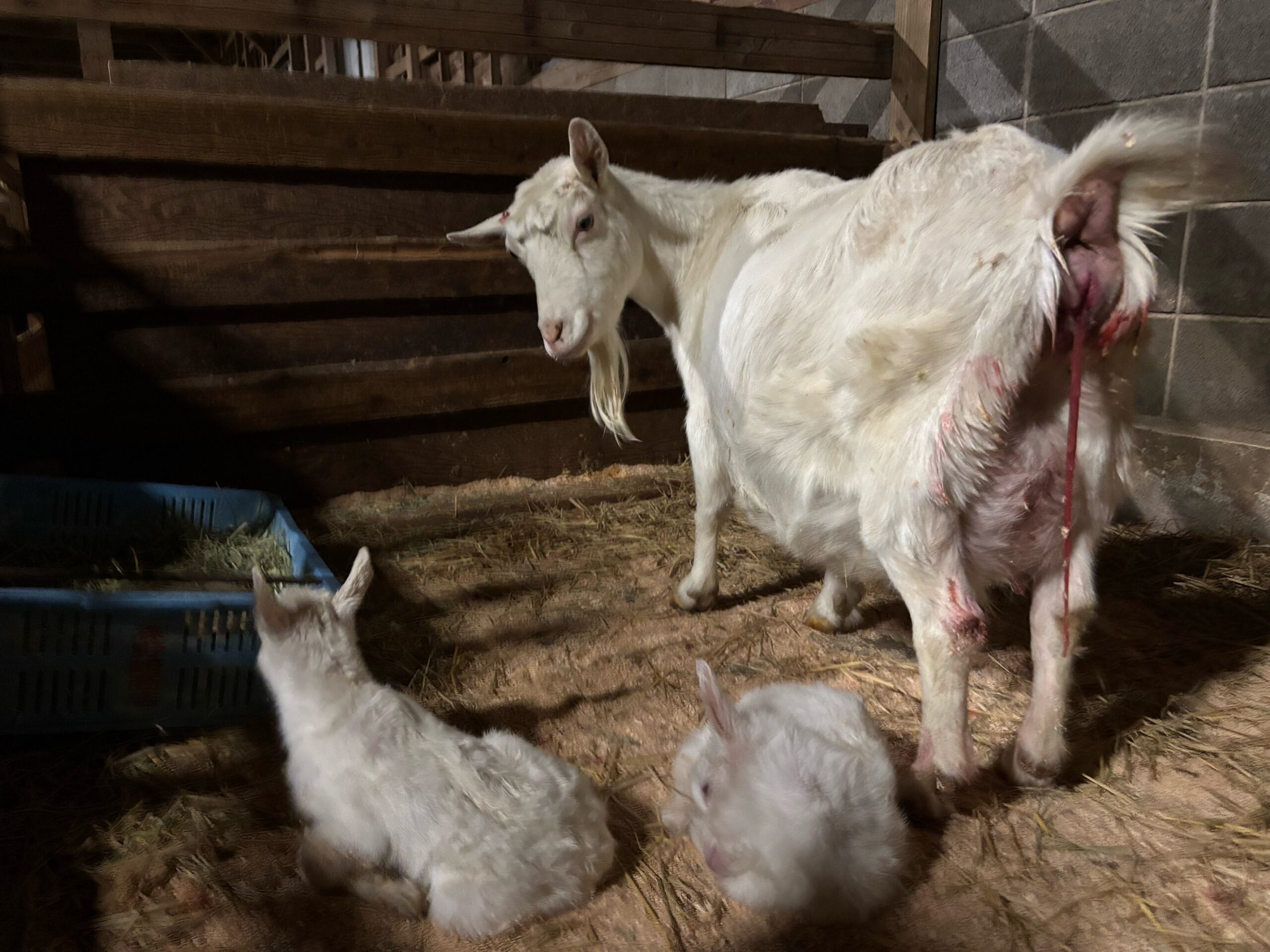 - 続けて2頭目のクルミちゃん(ヤギ母)が出産! 羊の家がにぎやかになってまいりました(●´ ω`●)