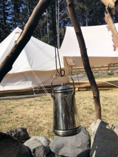 グランピングのメニューで「たき火コーヒー」を再開予定。