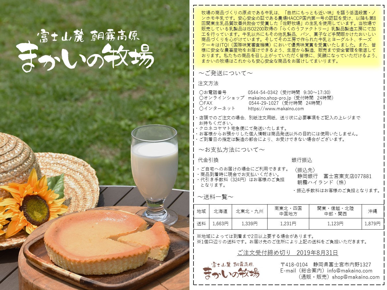 まかいの牧場 夏ギフト 2019.07.05 お知らせ SHARE:まかいの牧場では、人気商品を詰め合わせた夏ギフトを販売中です。 お電話注文等も可能ですので、お気軽にお問い合わせください。 印刷にはこちら(PDF)をご利用ください。