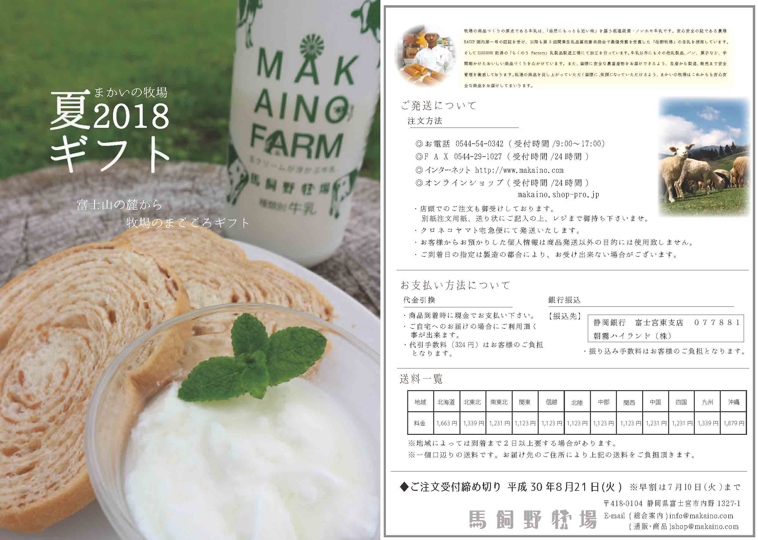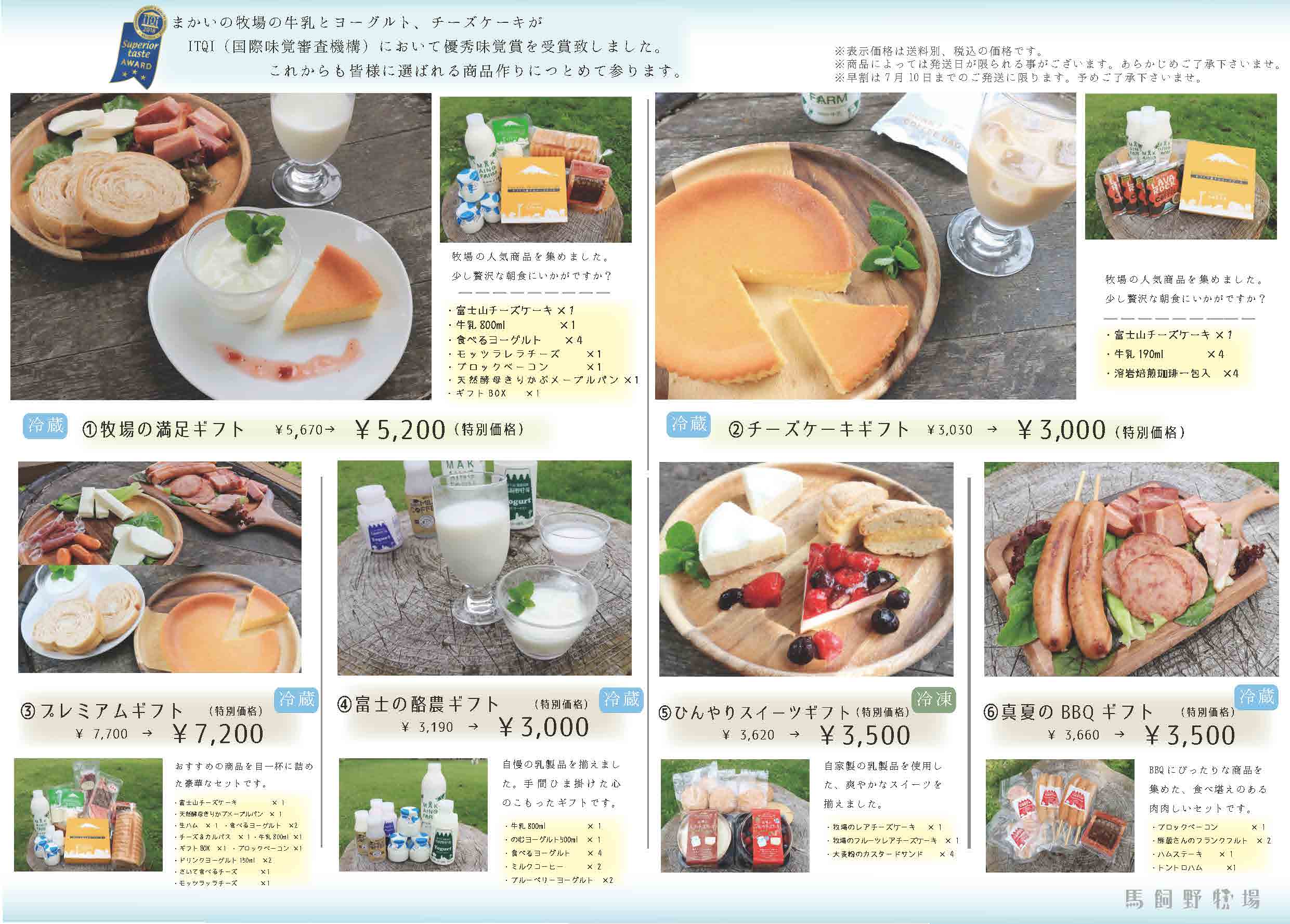 まかいの牧場 夏ギフト 2018.06.28 お知らせ SHARE:まかいの牧場では、人気商品を詰め合わせた夏ギフトを販売中です。 お電話注文等も可能ですので、お気軽にお問い合わせください。 ※7月10日までは早割実施中! 印刷にはこちら(PDF)をご利用ください。