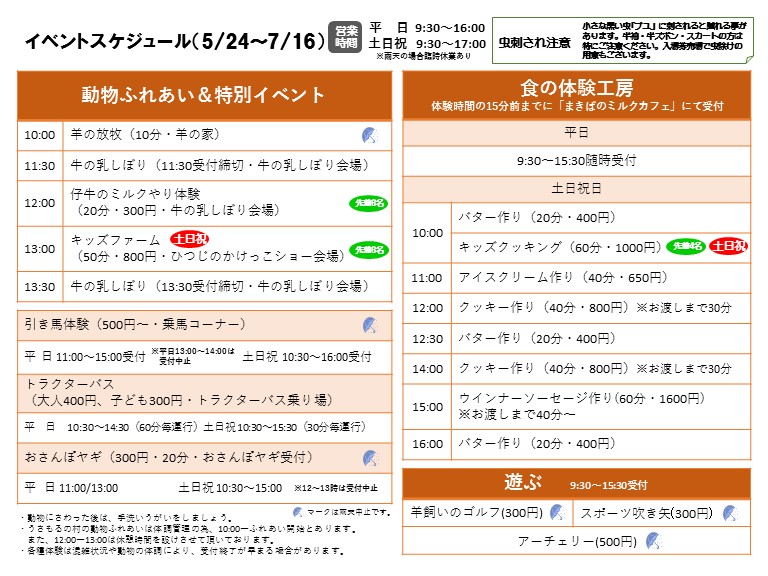 ※営業時間は新型コロナウイルス感染拡大防止の為、5/24~7/20の間、平日9:30~16:00/土日祝9:30~17:00に営業時間を変更させていただきます。なお雨天の場合臨時休業いたしますので、最新情報をご確認の上、ご来場下さい。