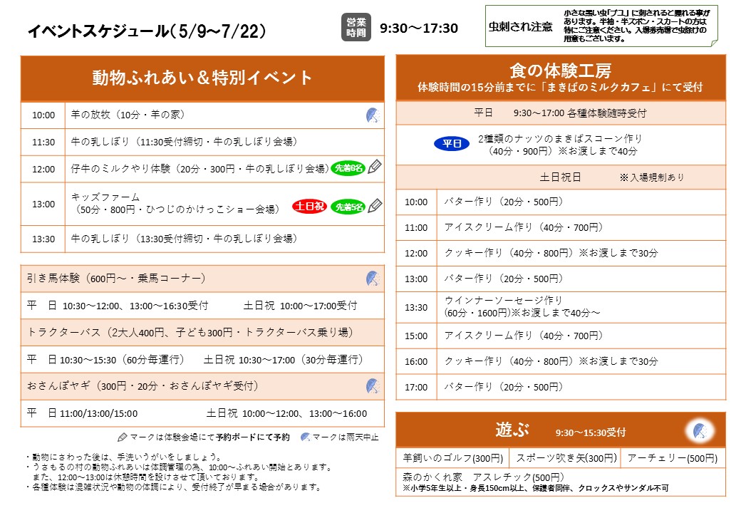 2022年5月9日~7月22日のイベントのタイムスケジュールです。印刷にはイベントスケジュール【こちら】(pdf)をご利用ください。