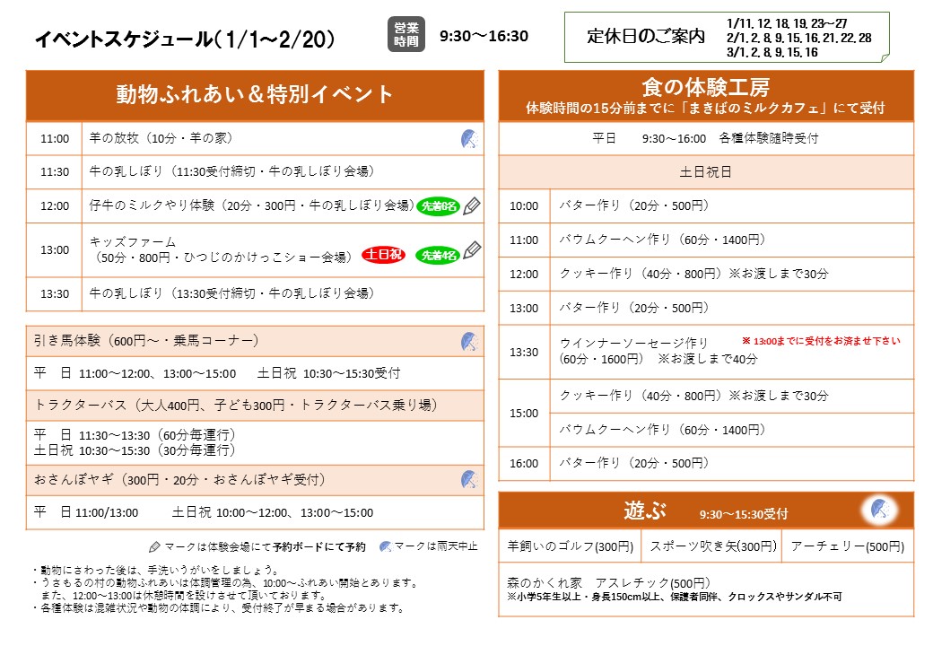 2023年1月1日~2月20日のイベントのタイムスケジュールです。印刷にはイントスケジュール【こちら】(pdf)をご利用ください。