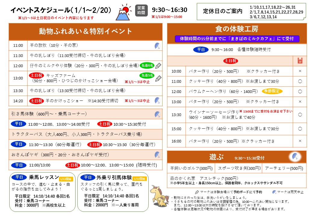 2024年1月21日~2月20日のイベントのタイムスケジュールです。印刷にはイベントスケジュール【こちら】(pdf)をご利用ください。