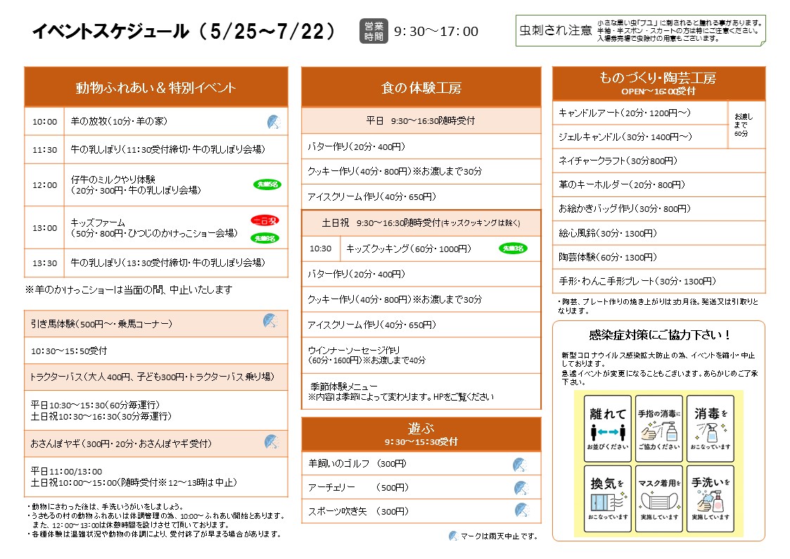 2020年5月22日~7月22日のイベントのタイムスケジュールです。印刷には場内でも配布しているイベントスケジュール【こちら】(pdf)をご利用ください。