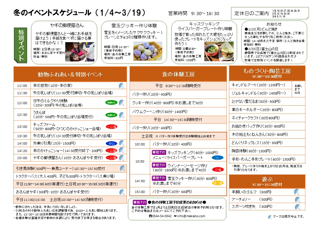2020年冬(1/4~3/19)のイベントのタイムスケジュールです。印刷には場内でも配布しているイベントスケジュール【こちら】(pdf)をご利用ください。