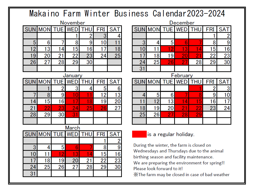 お越しいただく際は定休日をご確認の上、お気をつけてお越しくださいませ。