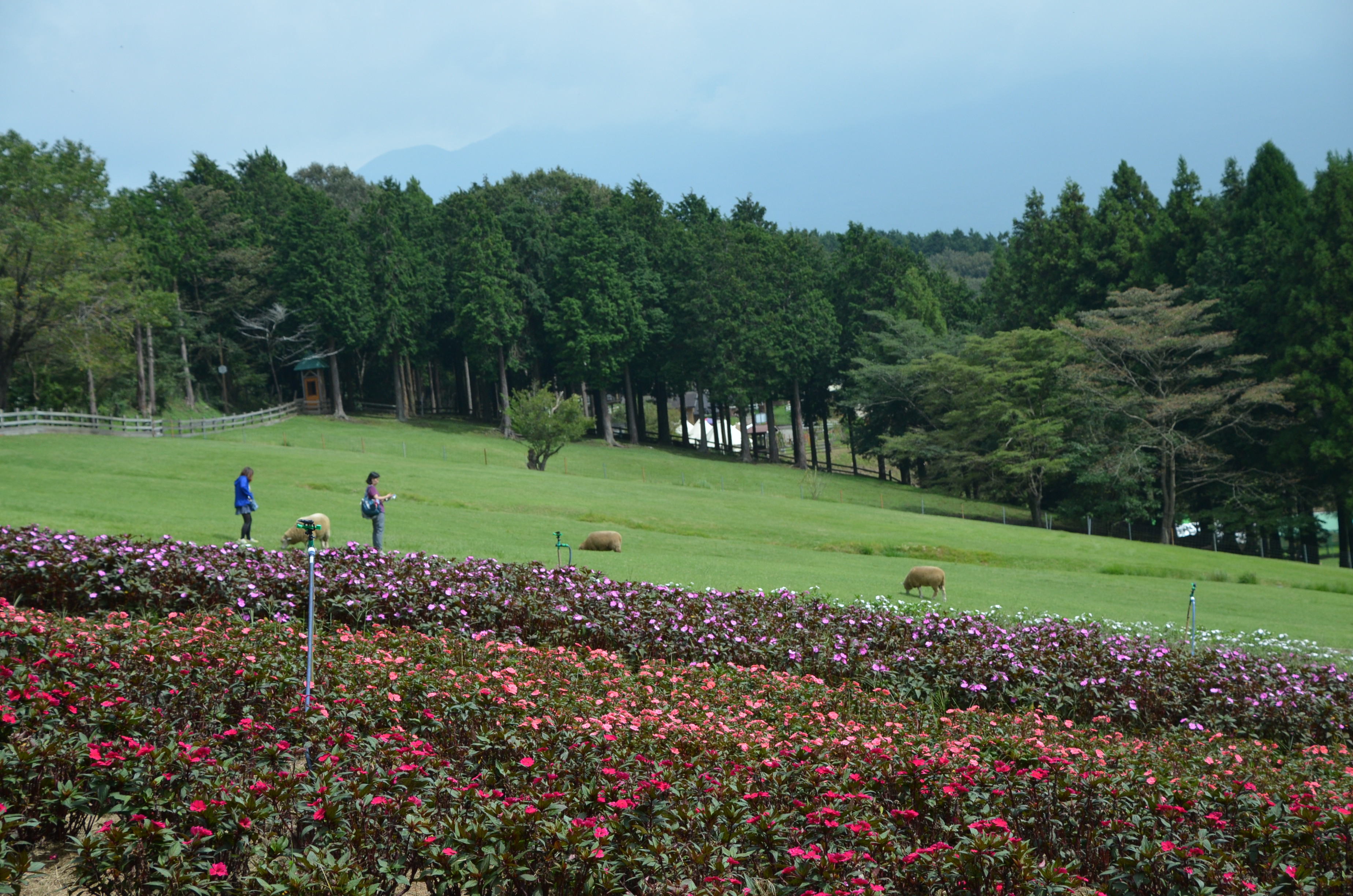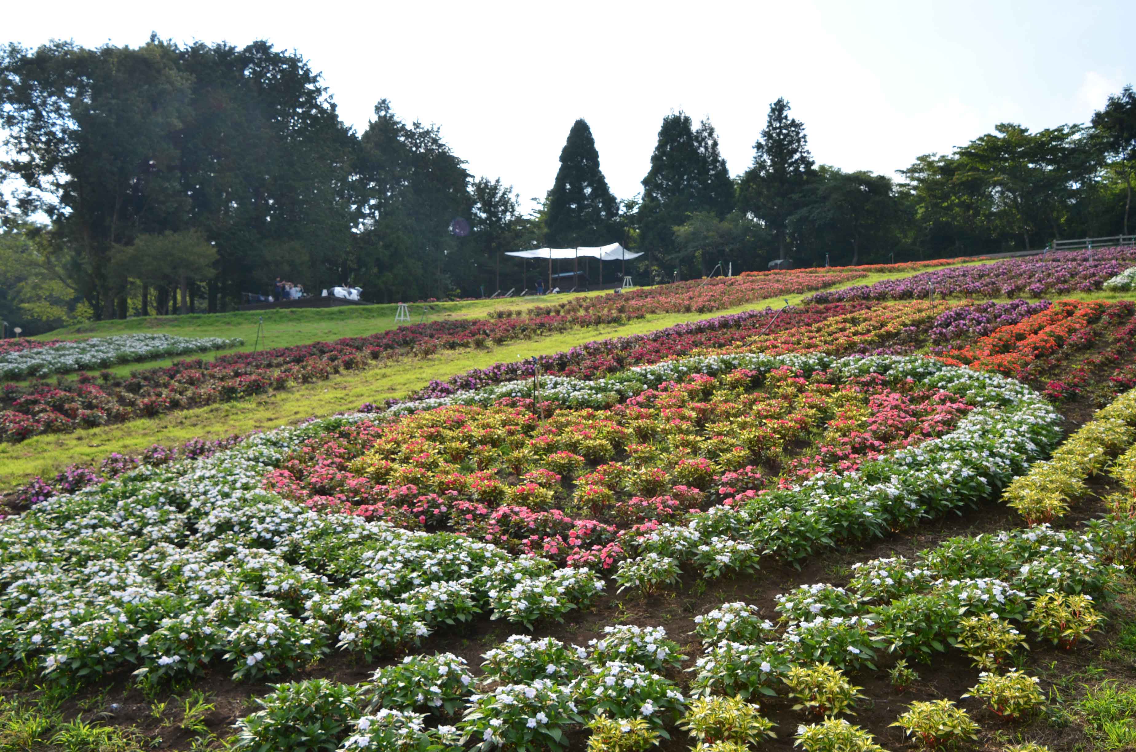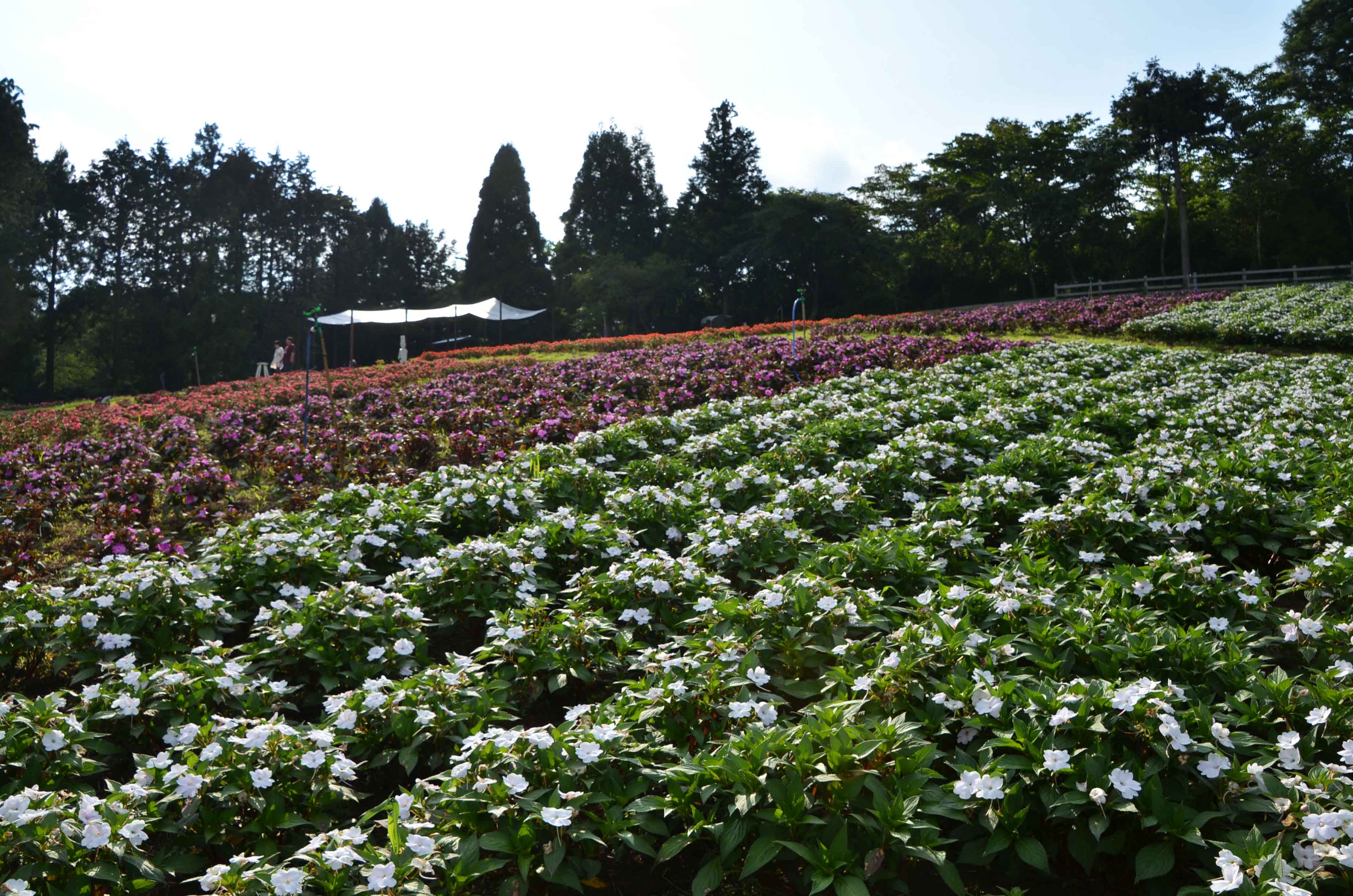 「羊の放牧場」横、サンパチェンスの花畑です。まだ株は小さいものの、見応え十分に育ってきています。