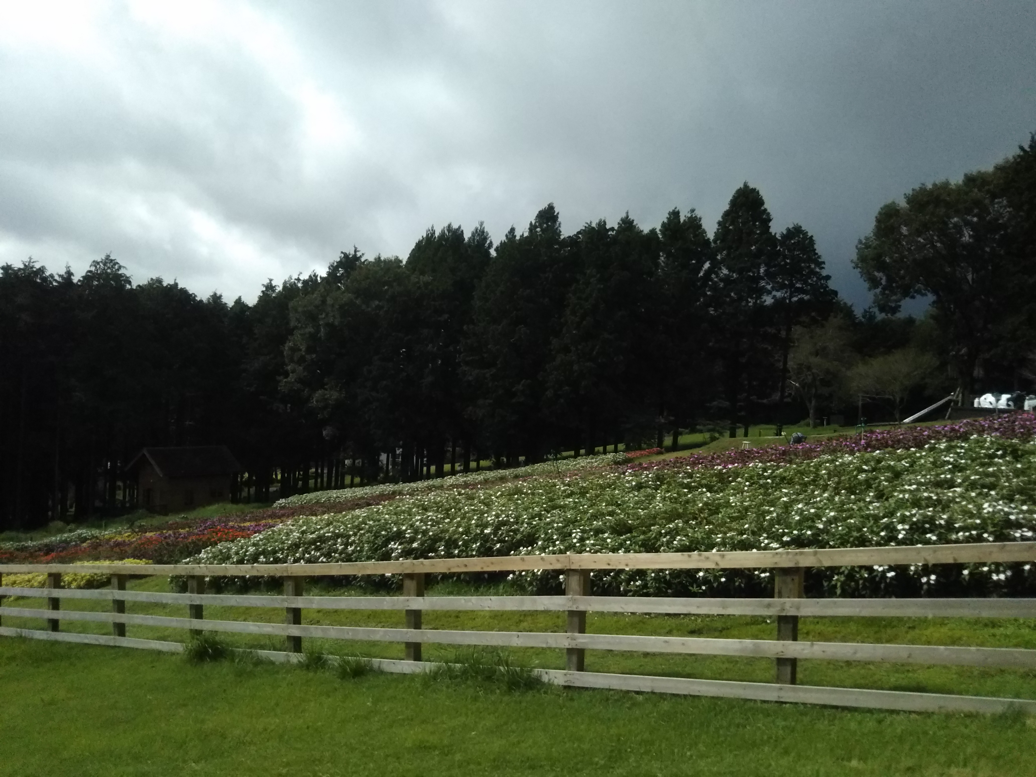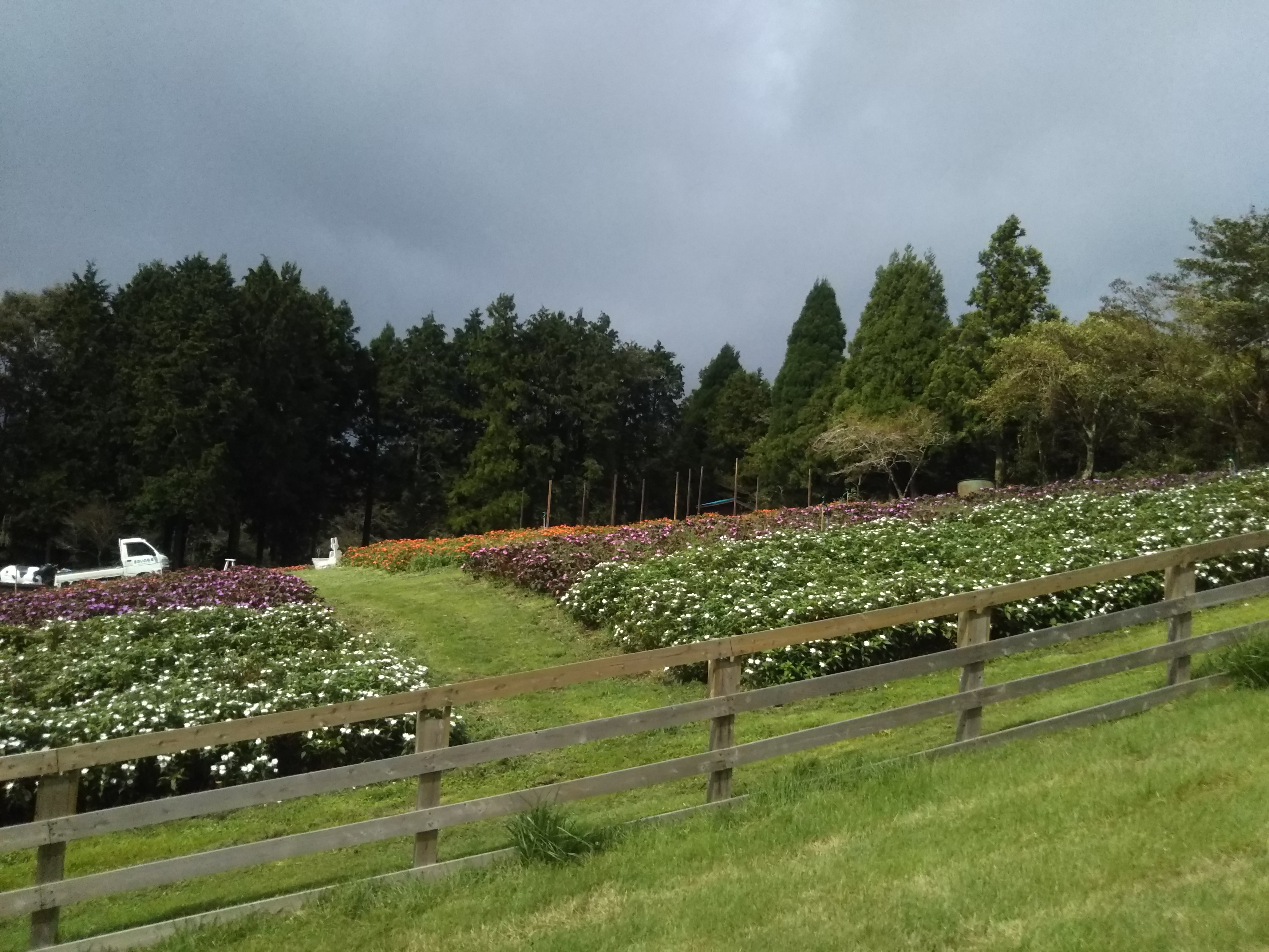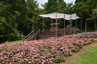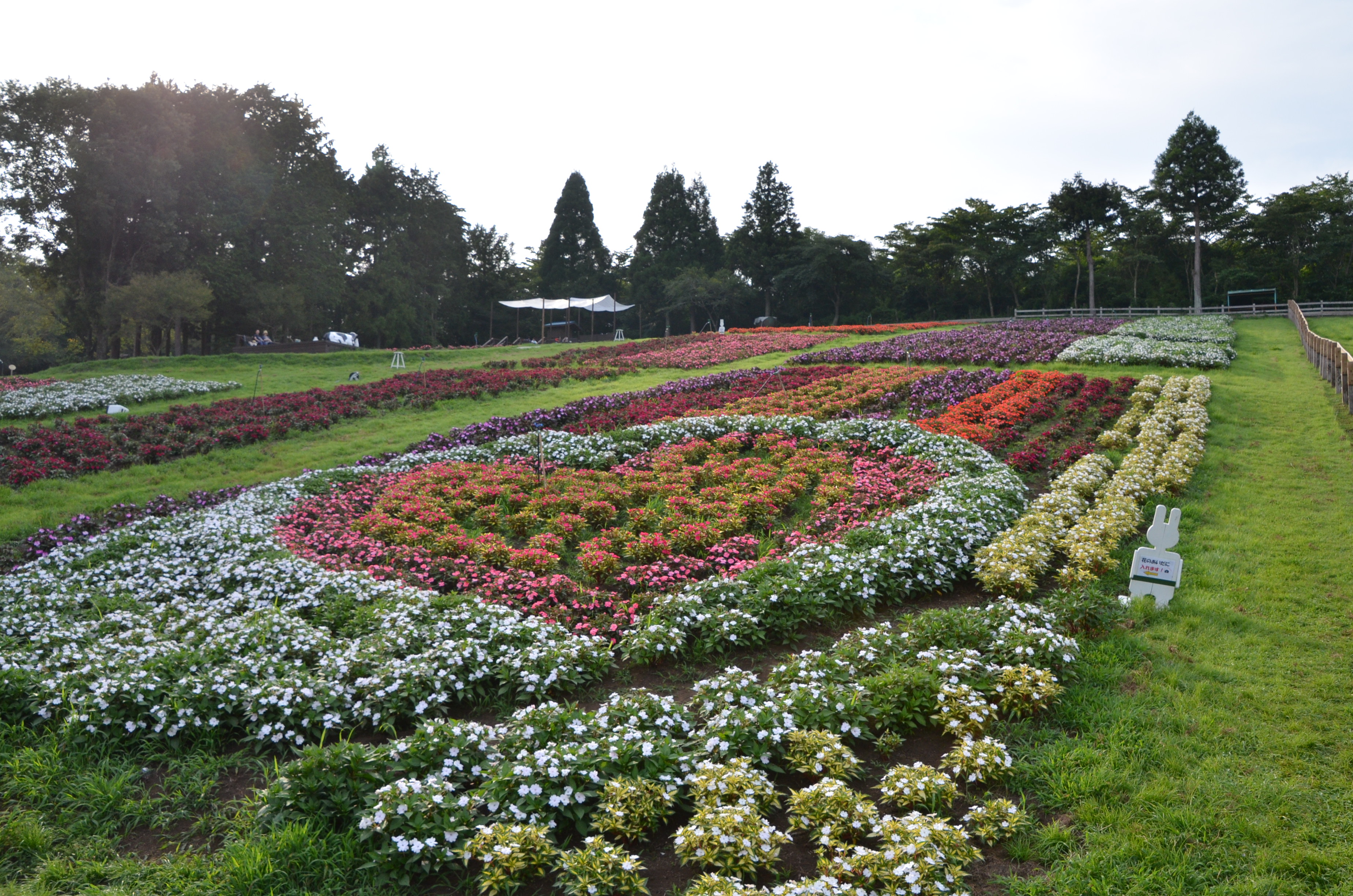 「羊の放牧場」横、サンパチェンスの花畑です。まだ株は小さいものの、見応え十分に育ってきています。