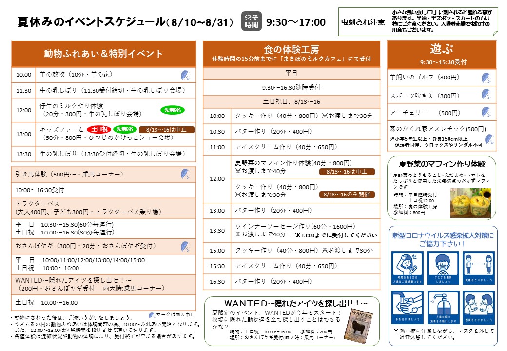 2021年8月10日~8月31日のイベントのタイムスケジュールです。印刷にはイベントスケジュール【こちら】(pdf)をご利用ください。・・・21/8/8改正