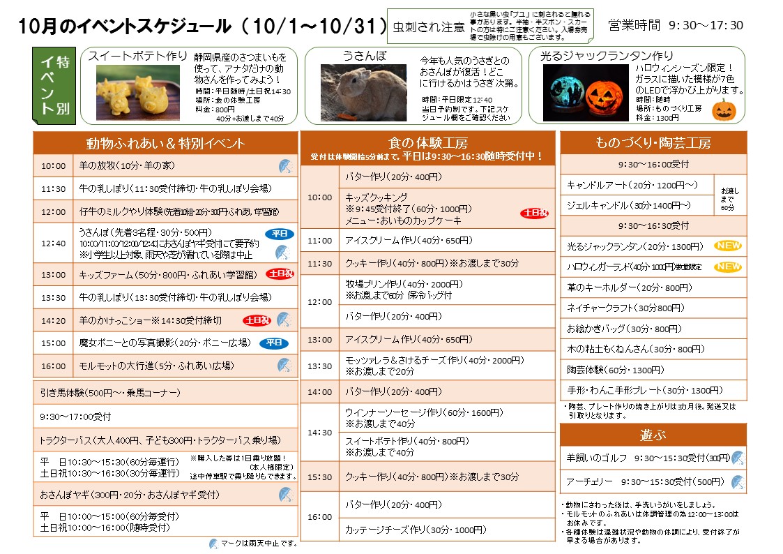 2018年10月(10/1~10/31)のイベントのタイムスケジュールです。印刷には場内でも配布しているイベントスケジュール【こちら】(pdf)をご利用ください。