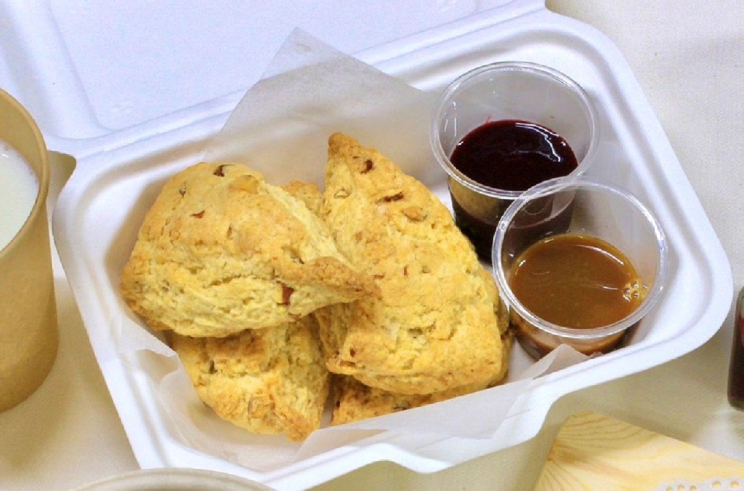 アーモンドとクルミが入ったスコーンにキャラメルと手作りのブル