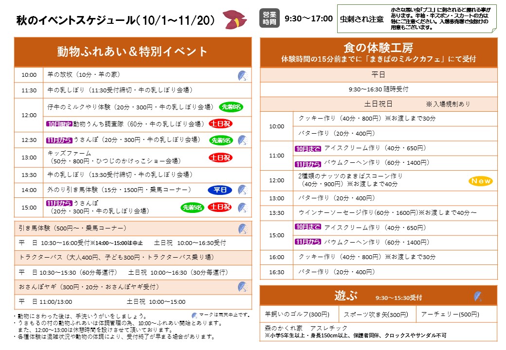 秋のイベントスケジュール