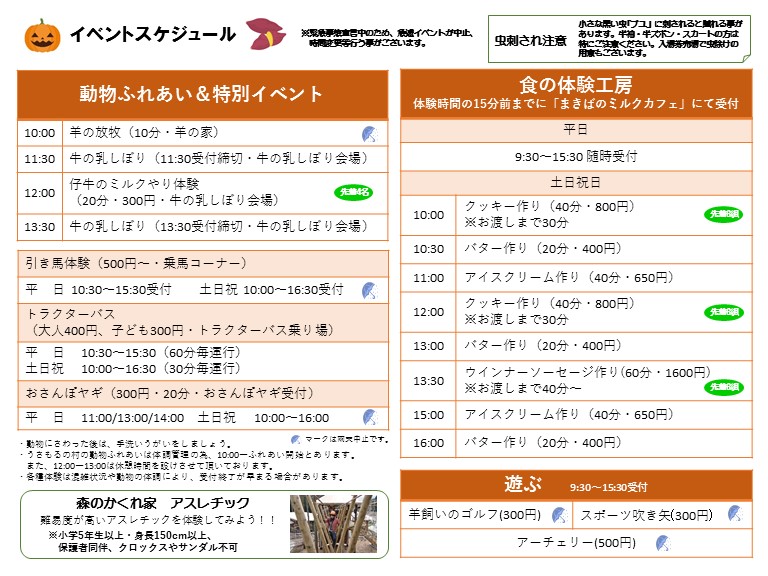 2021年9月1日~のイベントのタイムスケジュールです。印刷にはイベントスケジュール【こちら】(pdf)をご利用ください。