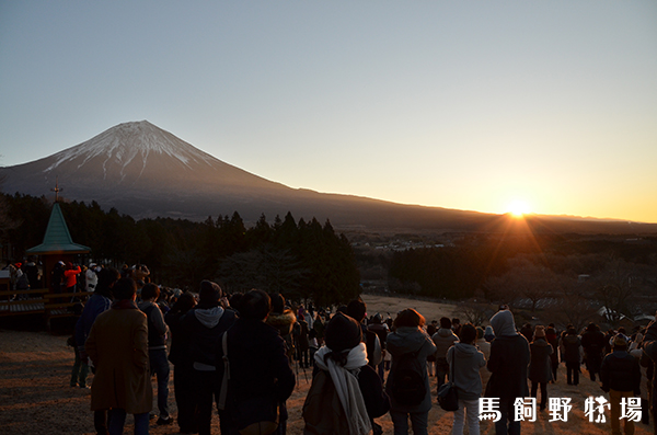 富士山麓から昇る初日の出を放牧場から眺めます。冬の朝、澄み切った空気の中で新しい年を迎えましょう。