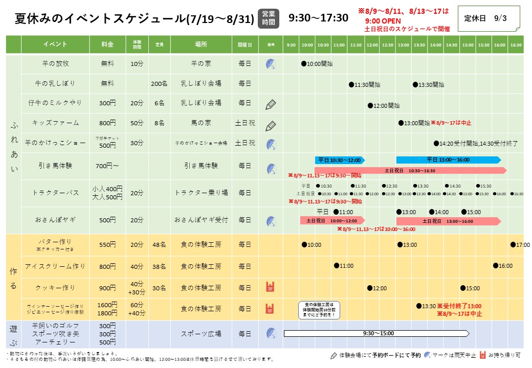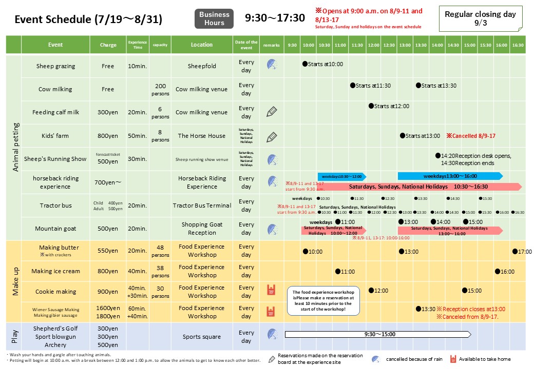 2025年7月19日~8月31日のイベントのタイムスケジュールです。印刷にはイベントスケジュール【こちら】(pdf)English version(pdf)をご利用ください。