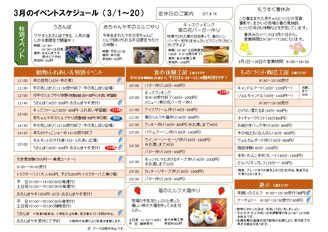 2018年3月(3/1~3/20)のイベントのタイムスケジュールです。印刷には場内でも配布しているイベントスケジュール(pdf)をご利用ください。