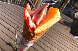 牧場チーズケーキと静岡県産の甘酸っぱいいちごを合わせた、春限定ソフトです。