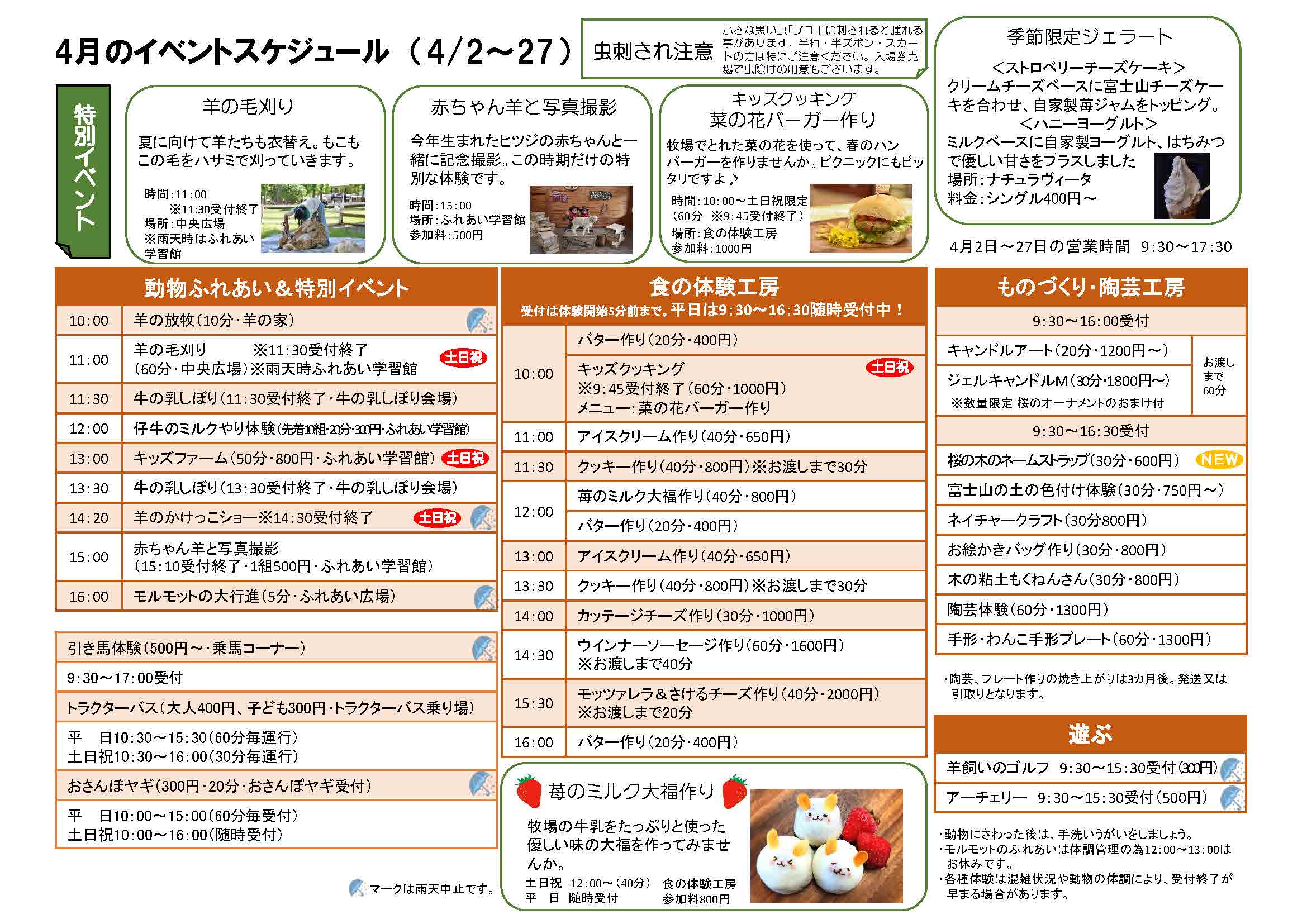 2018年4月(4/2~4/27)のイベントのタイムスケジュールです。印刷には場内でも配布しているイベントスケジュール(pdf)をご利用ください。