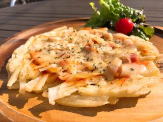 富士宮産ジャガイモを使用した、ボリューム満点のピザ。