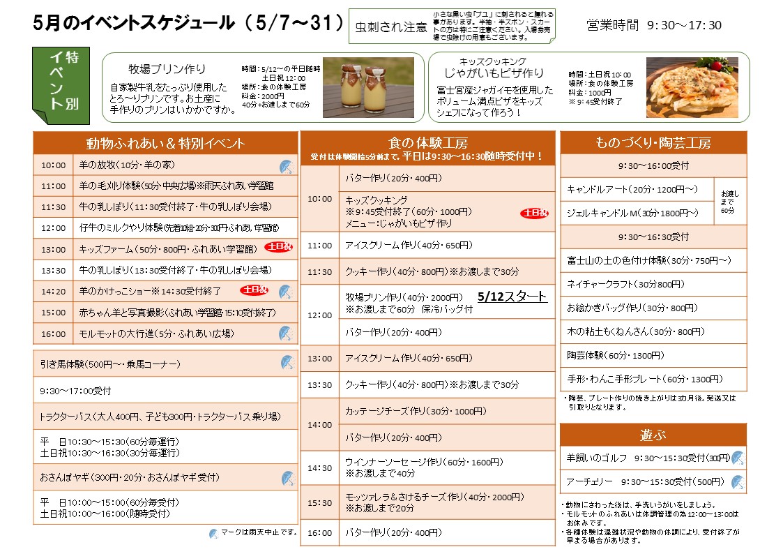 2018年5月(5/7~5/31)のイベントのタイムスケジュールです。印刷には場内でも配布しているイベントスケジュール【こちら】(pdf)をご利用ください。