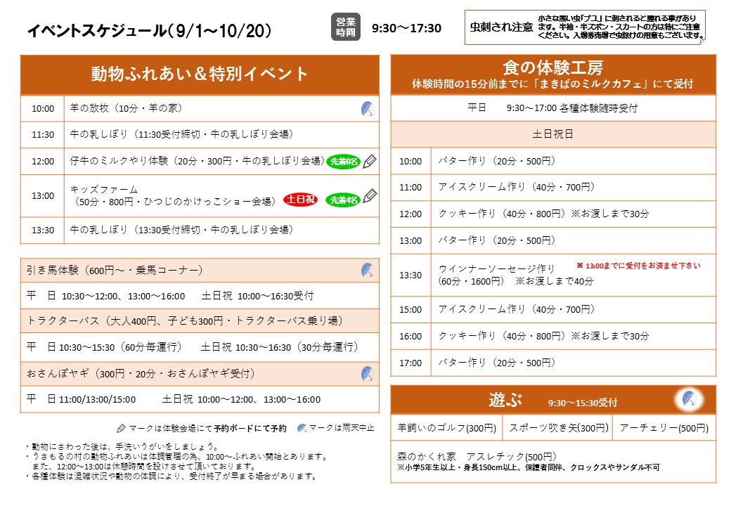 2022年9月1日~10月20日のイベントのタイムスケジュールです。印刷にはイベントスケジュール【こちら】(pdf)をご利用ください。