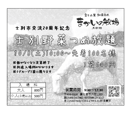 姉妹牧場交流20周年を記念しまして、「士別野菜詰め放題」を開催致します。