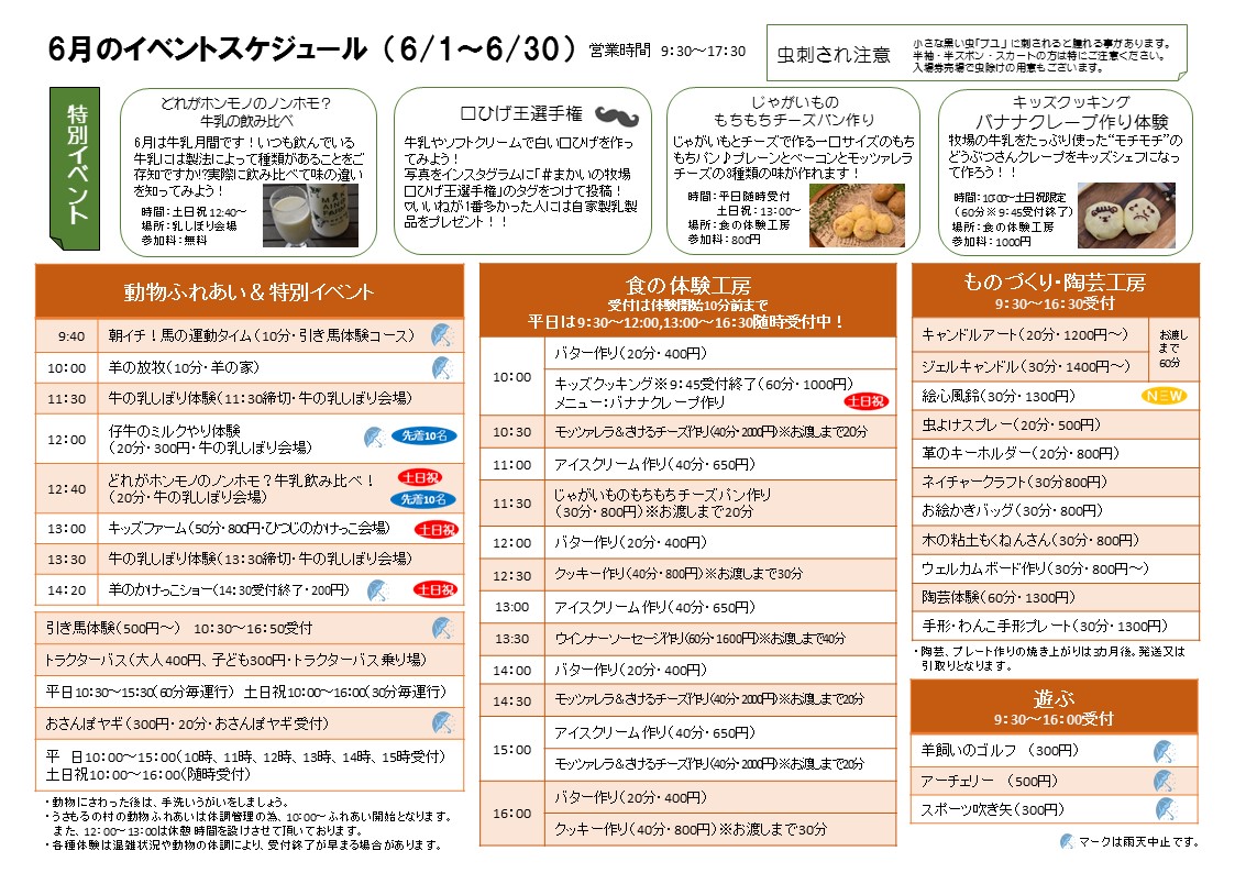 12時40分からの『どれがホンモノのノンホモ?牛乳の飲み比べ!』イベントの記載に間違いがございました。正しくは、土日祝日限定イベントになります。大変申し訳ございません。
