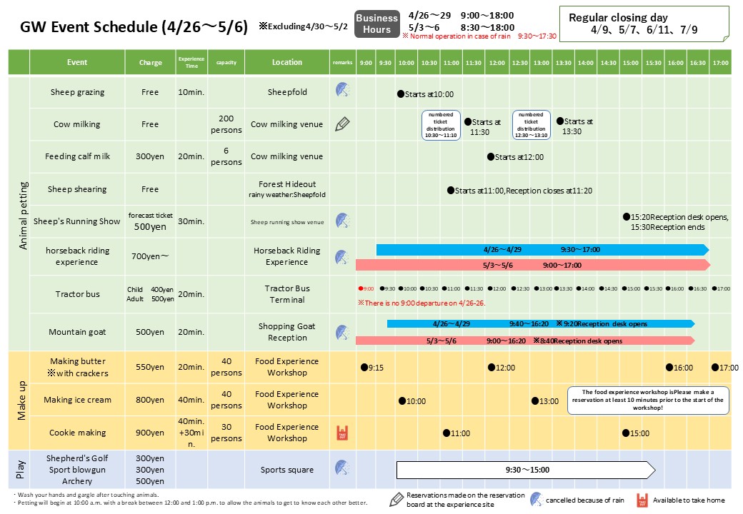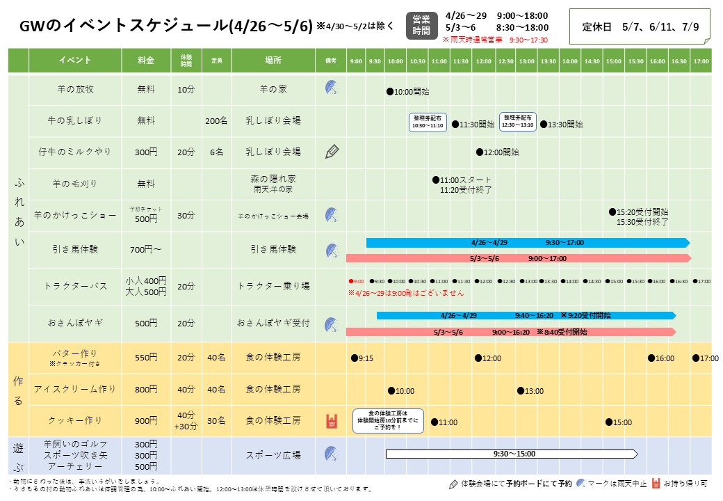 GWのイベントスケジュール(4/26~29&5/3~6)